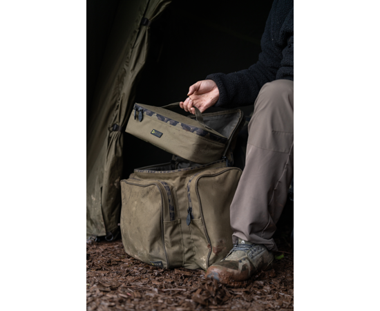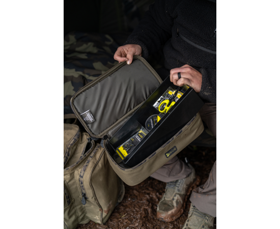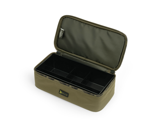 Die Tasche besteht aus robustem, wasserabweisendem 600D Oxford-Polyester und ist mit starken 10 mm Reißverschlüssen mit Avid Camo-Details ausgestattet. Im Inneren befindet sich eine formstabile Kunststoff-Einsatzschale zur besseren Organisation des End Tackles.