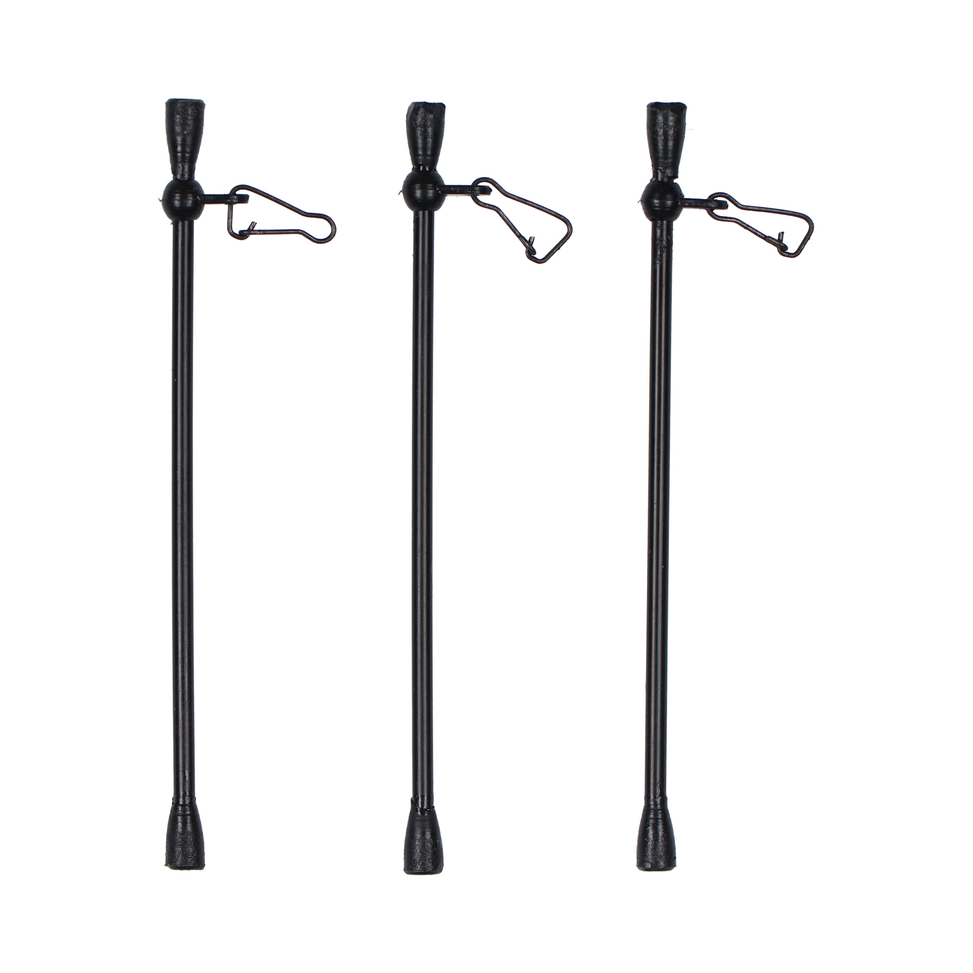• Drei Abstandhalter, um zu verhindern, dass die Vorfachleitung sich mit der Hauptleine verwickelt. Die Hauptleine läuft durch das Rohr des Abstandhalters, wodurch die Leine frei in Verbindung mit der Rutenspitze steht und Bisse perfekt registriert werden können.