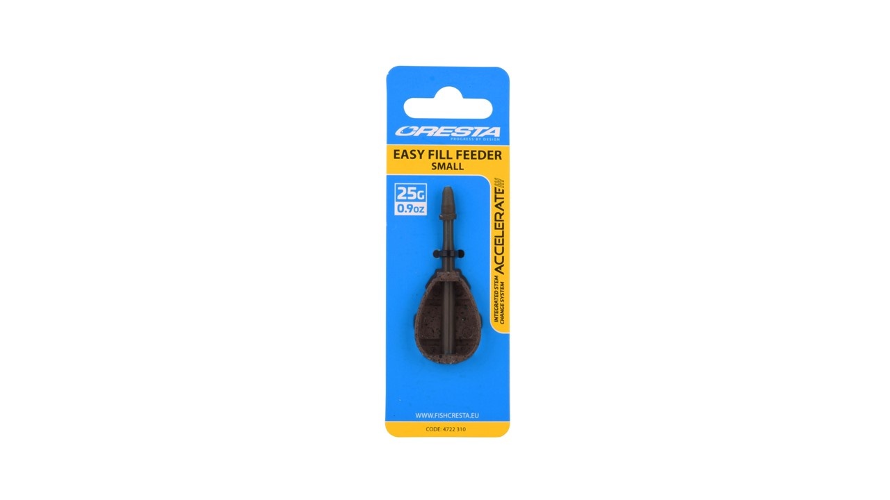 Die Accelerate Easy Fill Feeders Small sind sehr einfach und schnell zu verwenden. Indem man den Feeder mit Futter und/oder Pellets füllt und anschließend dies zusammen mit dem Hakenköder manuell zusammendrückt, ist eine Method Mould überflüssig. Der komplett aus Metall gefertigte Körper ist aerodynamisch geformt und mit einer unauffälligen, weichen Beschichtung versehen. Der Boden ist komplett geschlossen, während seitlich Schlitze über den Boden laufen. Dieses intelligente Design sorgt dafür, dass das Wasser erst nach Erreichen des Bodens den Inhalt herausdrückt. Das herausnehmbare Rohr ist am Ende mit einer kompakten Gummihülse versehen. Ein Schlitz im Boden ermöglicht den Wechsel zu einem anderen Feeder aus der Accelerate-Serie ohne zu knoten. Die Easy Fill Feeders Small sind perfekt für kurze bis mittlere Distanzen einsetzbar, wenn der Fisch nur wenig Futter benötigt.
