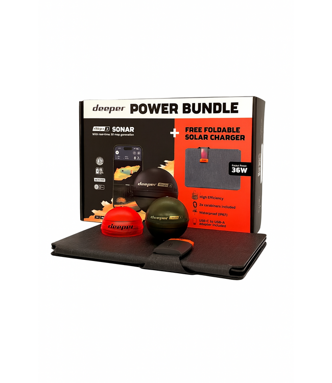 Das Deeper Chirp+ 3 Power Bundle ist eine komplette Hightech Lösung für Angler, die ihre Gewässer bis ins Detail verstehen und vollkommen unabhängig vom Stromnetz bleiben möchten. Dieses Paket kombiniert den auswerfbaren Deeper Chirp+ 3 Sonar mit einem leistungsstarken, faltbaren 36W Solarladegerät, sodass Sie Tag für Tag scannen, planen und angeln können, ohne sich um leere Akkus zu sorgen.