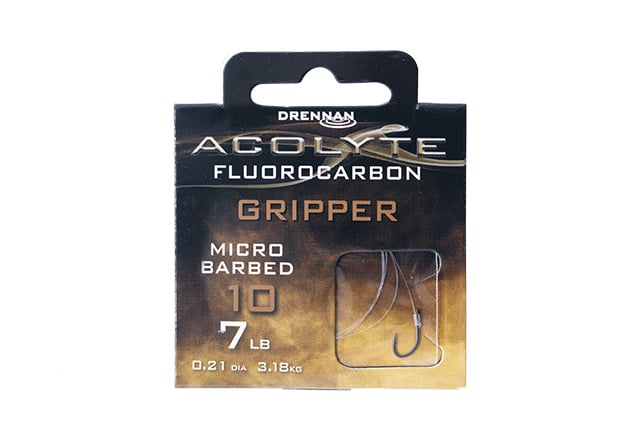 Die Drennan Acolyte Fluorocarbon Gripper Micro Barbed Vorfächer sind perfekt für das gezielte Angeln auf größere Fische in kommerziellen Gewässern. Jedes Vorfach ist 50 cm lang und wird handgebunden auf ultraleichtem Acolyte Fluorocarbon, das nahezu unsichtbar ist und eine natürliche Köderpräsentation garantiert.