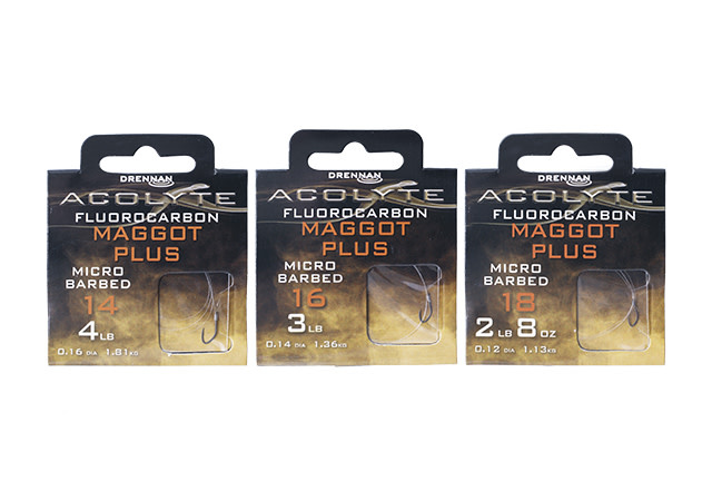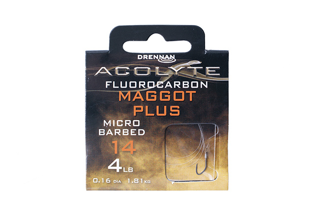 Die Drennan Acolyte Fluorocarbon Maggot Plus Micro Barbed Vorfächer sind ideal für das Feeder- oder Posenangeln auf kleine bis mittelgroße Weißfische. Das Maggot Plus-Hakenmodell mit Mikro-Widerhaken eignet sich besonders gut für Maden, Caster oder kleine Wurmstücke.