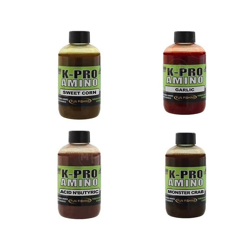 Amino K-Pro-Flüssigkeiten sind eine Mischung aus Aminosäuren und löslichen Lockstoffen. Sie können Ihren Teig, Ihre Pellets oder Ihre Einzelfuttermittel bearbeiten, um sie attraktiver zu machen.