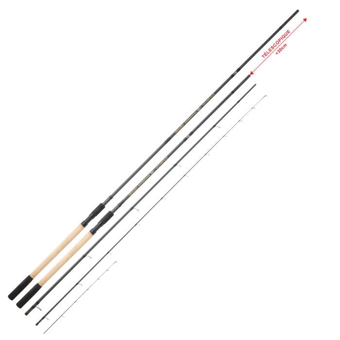 Die Garbolino ESSENTIAL X-TEND MATCH HYBRID Rute ist ein exklusives Modell mit einem völlig neuen Konzept im Wettkampfangeln. Sie erfüllt nicht nur alle Kriterien unserer exklusiven Hybrid-Match-Ruten, d.h., dass du die Aktion deiner Rute ändern kannst dank der zwei mitgelieferten Spitzen unterschiedlicher Stärke, sondern sie profitiert auch von einer Verlängerung um 30 cm durch das revolutionäre X-TEND-Konzept. Du musst nur den Schaft vom Griff entriegeln und den Schaft herausziehen, bis er einrastet, um die Rute um 30 cm zu verlängern. Mit dieser Kohlenstoffreserve, versteckt im Korkgriff, kannst du mehr Länge bekommen, wenn du mit einem festen Schwimmer übst, oder mehr Kraft, wenn du weiter werfen musst. Dieses Modell mit 3 gleich langen Sektionen bietet totale Vielseitigkeit.