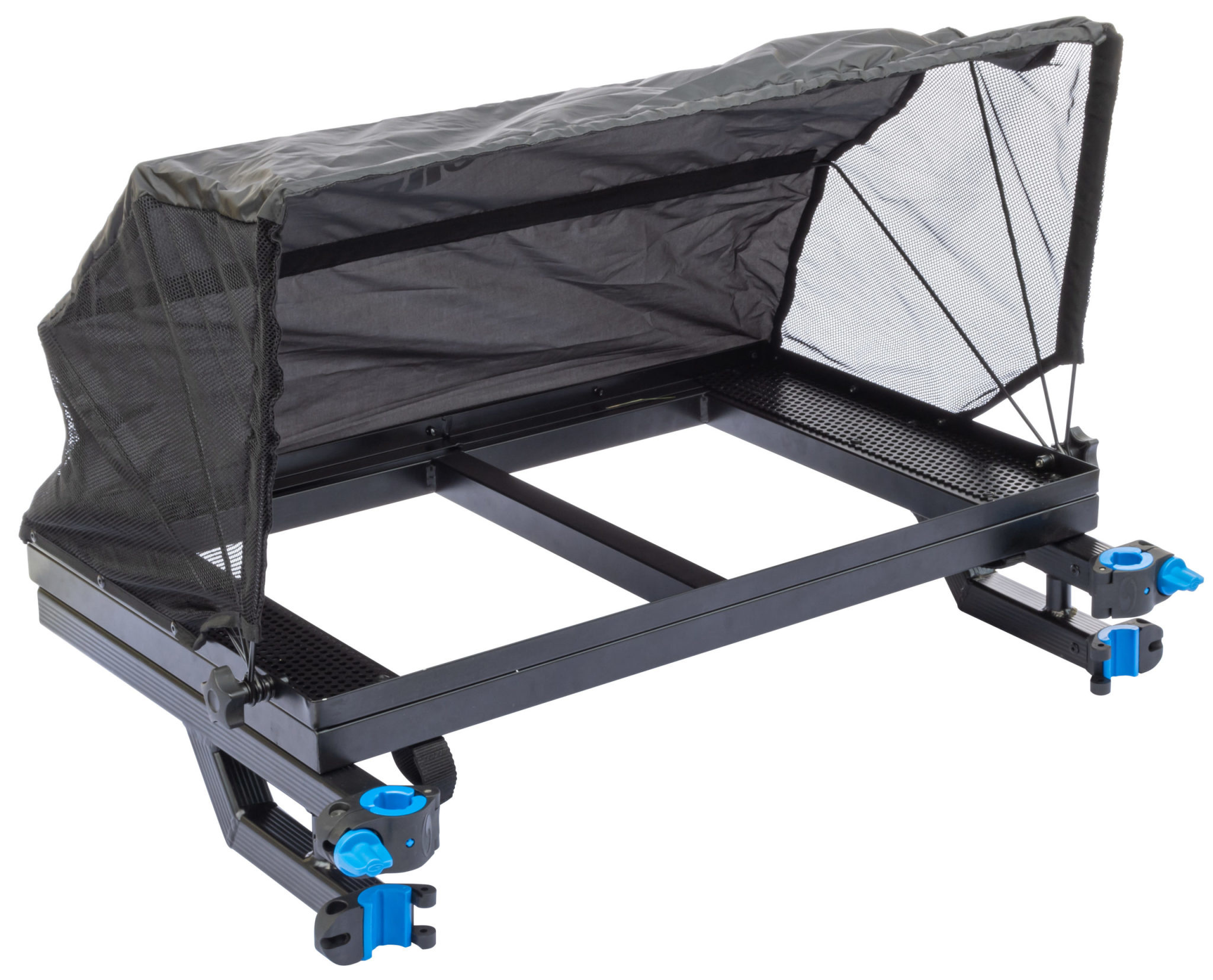 Garbolino bringt die neue Generation von Beistelltischen mit Einsätzen heraus. Ein praktisches, sehr schnell und einfach zu montierendes Modell. Außergewöhnlich stabil, der Tisch hat großzügige Abmessungen mit einem Zelt, dies um dein Köder vor allen Wetterbedingungen zu schützen. Er ist geeignet für 2 klappbare Kisten (nicht im Lieferumfang enthalten). Kann an den D25 - D30 - D36 Beinen befestigt werden.