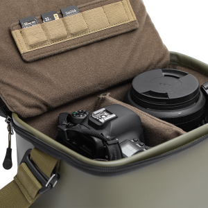 Die Korda Compac Kamerataschen werden unter Verwendung von hochwertigem EVA-Stoff hergestellt, was sie stark, langlebig und wasserfest macht und somit teure Kameraausrüstung jederzeit schützt. Die mittlere Größe ist konzipiert, um eine Spiegelreflexkamera mit einem angebrachten Objektiv und ein zusätzliches Objektiv oder Blitzgerät sowie andere Kamerabedarfsartikel wie SD-Karten, Batterien, Kabel und Filter aufzunehmen.