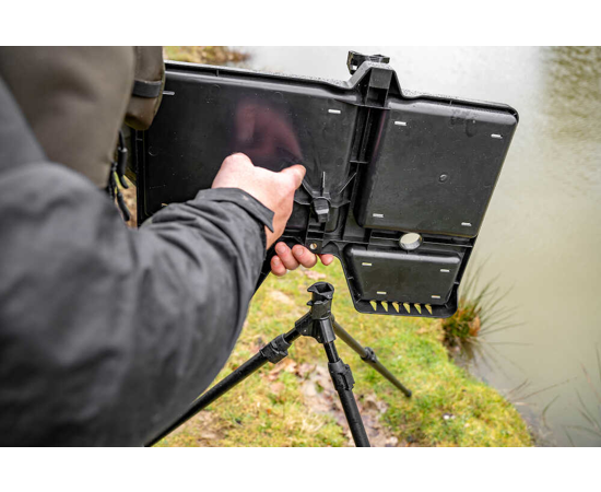 Mit dem Allrounder Tablett und Stativadapter hast du ein freistehendes Tablett für den Einsatz in jeder Situation. Das Tablett ist voller Funktionen. Es hat BLOX und Bait Tub Größenaussparungen, einen Becherhalter, Katapultschlitz und ein eingebautes Rig Rack. Es kann als Köderregal verwendet oder an einem Stuhlzubehör befestigt werden, um ein Seitentablett zu erstellen. Der Stativadapter kann mit oder ohne die Schnellkupplung verwendet werden, um noch mehr Stabilität zu bieten, wenn du das Tablett im Wasser verwendest. Ein fantastisches multifunktionales Tablett. Tablett 48cm x 33cm.