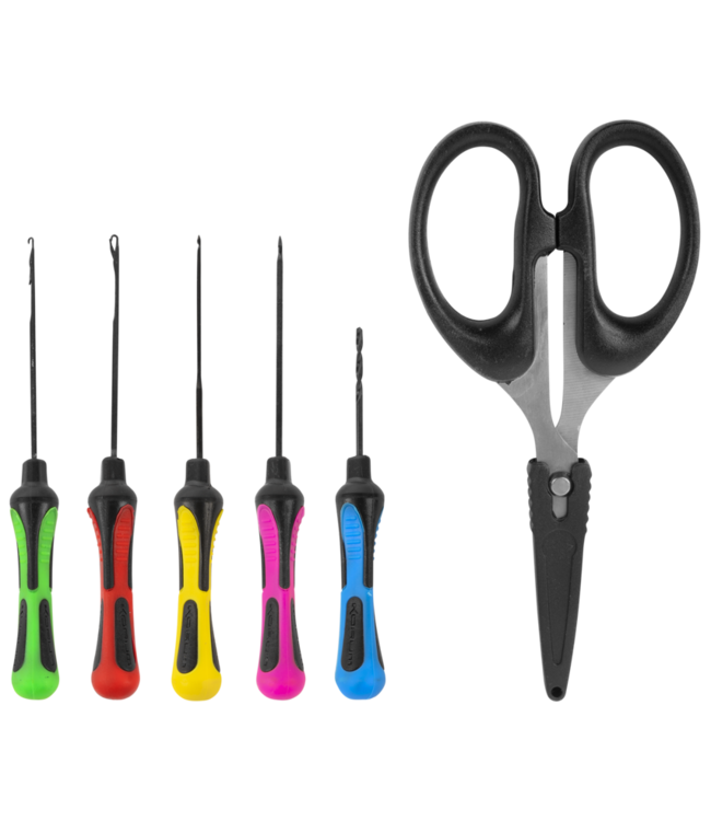 Das Korum Baiting Tool und Scheren Set ist ein komplettes Set für Angler, die alle wichtigen Köder- und Rig-Werkzeuge übersichtlich griffbereit haben möchten. Dieses praktische Set enthält das vollständige Sortiment an Ti Baiting Tools sowie eine Schere, sodass sich Köder, Vorfächer und Rigs schnell am Wasser oder zu Hause vorbereiten lassen. Dank der Kombination verschiedener Nadeln und eines Bait Drills eignet sich dieses Set für viele Anwendungen beim Montieren von Ködern. Die 2 Gated Needles sind ideal für weichere Köderarten und Hair Rigs, während die 2 Safety Barbed Needles zusätzlichen Halt beim Durchziehen des Köders bieten. Der Bait Drill hilft beim sauberen Vorbohren von härteren Ködern, und die Schere eignet sich perfekt zum Schneiden von Schnur, Vorfachmaterial oder anderen kleinen Materialien. Dieses Set ist eine praktische Wahl für Angler, die effizient und organisiert arbeiten möchten.