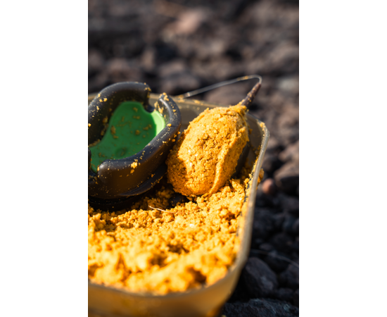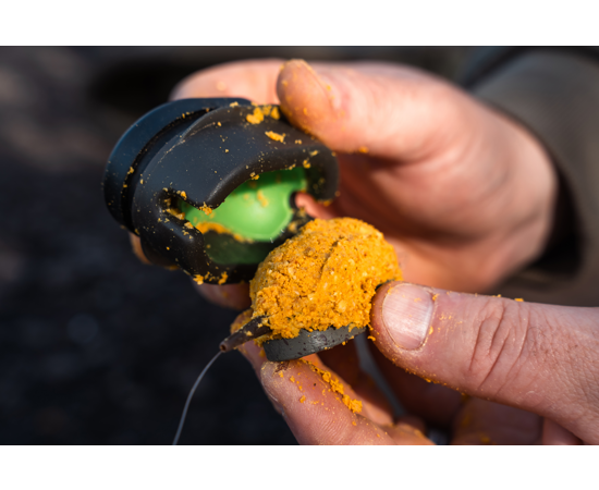 Die Form produziert eine konische Futterschicht, die sich ideal für Weitwürfe eignet. Die tiefgezogene Ausformung hält das Futter stabil um den Feeder, bis es sicher den Grund erreicht.