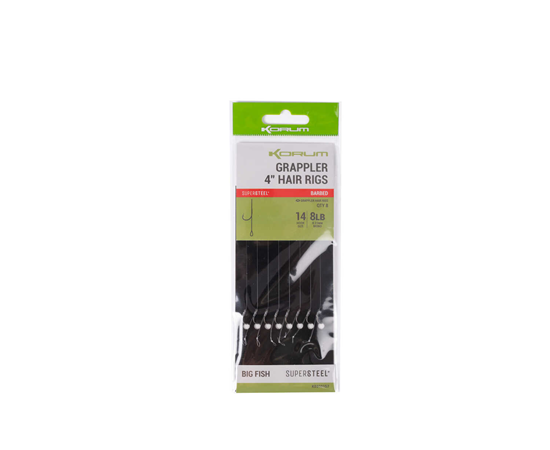 • Entworfen für stärkere Hair Rigs beim Angeln auf größere Fische. Vergrößerte Liniendurchmesser und unser leistungsstarker Supersteel Grappler Haken sorgen für das perfekte Hair Rig für große Fische.
