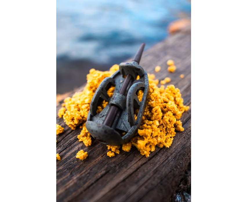Das besondere Design mit stabilem Innenrahmen garantiert, dass der Köder den Grund sicher erreicht und dort bleibt. Mit der passenden Spezialform (Mould) wird der Köder in eine konische Form gebracht – ideal für weite, zielgenaue Würfe und gleichmäßige Freisetzung des Futters.