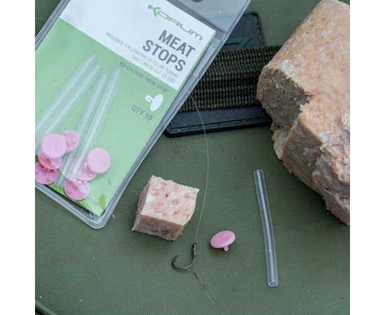 Das Korum Meat Stop System ist entworfen worden, um die Haltbarkeit von Fleischhakenködern zu verbessern, durch einen speziell entworfenen Köderstopper mit einigen einzigartigen Eigenschaften. Zuerst, die große flache Oberfläche verhindert, dass weicheres Fleisch von der Hair-Schlaufe durch kleine Fische gezogen wird - es bietet auch einen Stoßschild beim Werfen oder schnellen Einholen. Die Greifarme halten Ihren Köder in Topzustand. In Kombination mit den durchsichtigen Röhren schließt der kleine Hakenhalter in der Röhre. Das Röhrchen verhindert auch, dass die dünnen Haare durch die Seiten des Fleischköders schneiden.