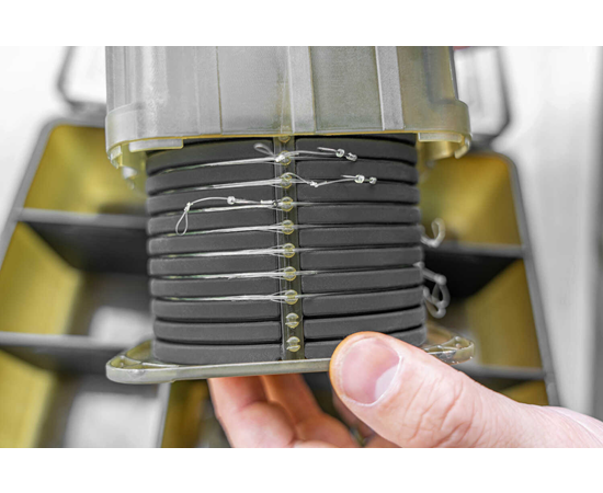 BLOX ist ein neues Konzept für die Aufbewahrung von Angelgerät, das auf den Allrounder ausgerichtet ist. Entwickelt, um alles, was Sie benötigen, an einem gut organisierten Ort aufzubewahren. Der neue RIG BLOX DELUXE bringt die Idee eines Rig Winders auf ein völlig neues Niveau. Keine Stecknadeln nötig! Ausgestattet mit einer sorgfältig entworfenen Brücke, die mit Schlaufen oder Wirbeln verwendet werden kann, um Ihre Hakenlinks festzuhalten. Wickeln Sie einfach Ihr Rig auf und stecken Sie Ihren Haken in das weiche Silikon, um ihn an Ort und Stelle zu halten. Das DELUXE Modell wird mit einer starken Außenhülle geliefert, die Ihre Rigs vor Verwicklungen in Ihrer Tasche schützt. Das Innenfach ist zugänglich für weitere Aufbewahrung. Kompatibel mit allen BLOX Tackleboxen. 68mm (D) x 109mm (B) x 74mm (H)