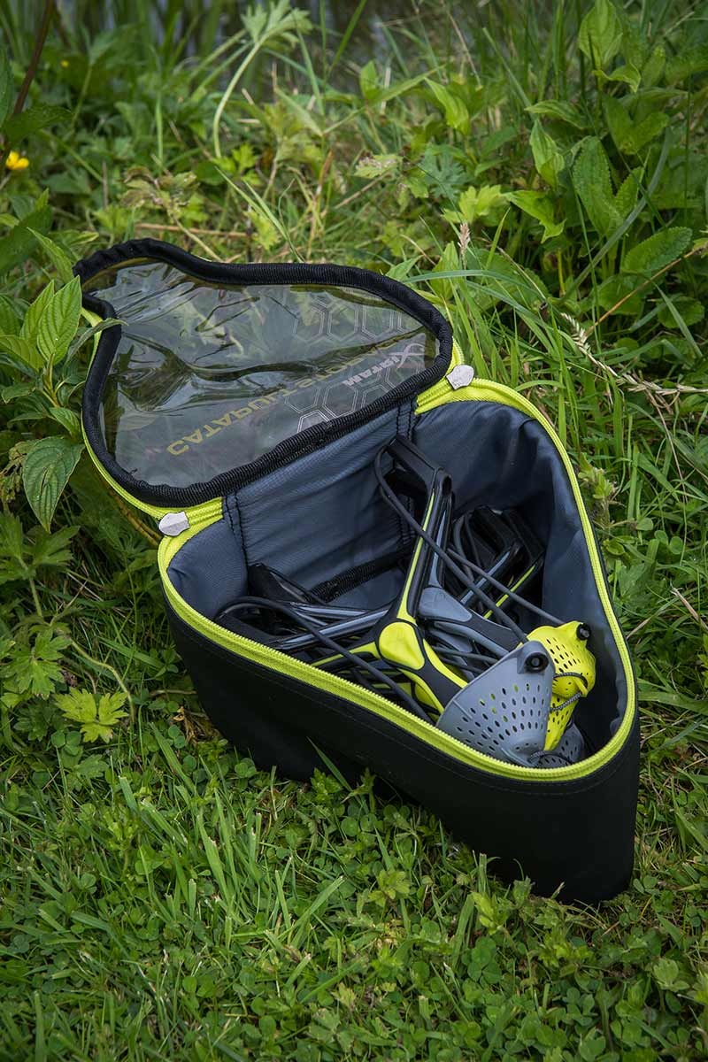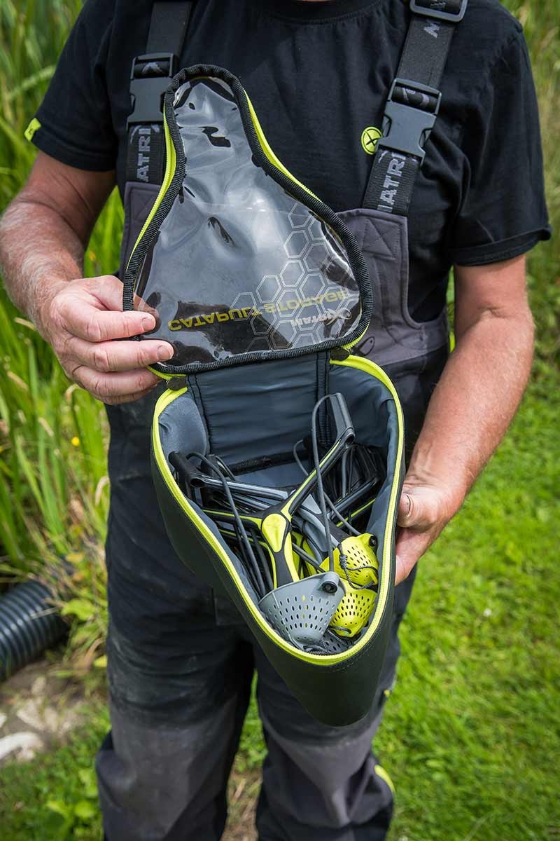 Das Matrix Catapult Case ist ein unverzichtbares Zubehör für Angler, die ihre Zwillen sicher und organisiert aufbewahren möchten. Mit seinen langlebigen Materialien und dem praktischen Design bietet diese Tasche alles, was du brauchst, um deine Angelausrüstung ordentlich zu halten und bequem zu transportieren.