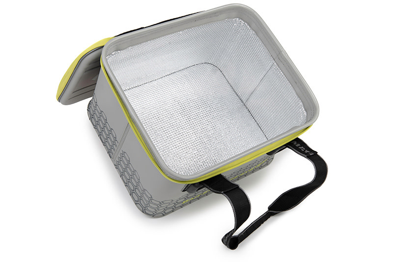 Kapazität für 6 x 3.3pt Köderbehälter mit zusätzlichem Platz. Hergestellt aus strapazierfähigem EVA mit hitzeversiegelten Nähten. Hellgraues EVA außen und innen mit thermischer Folie, um den Inhalt kühl zu halten