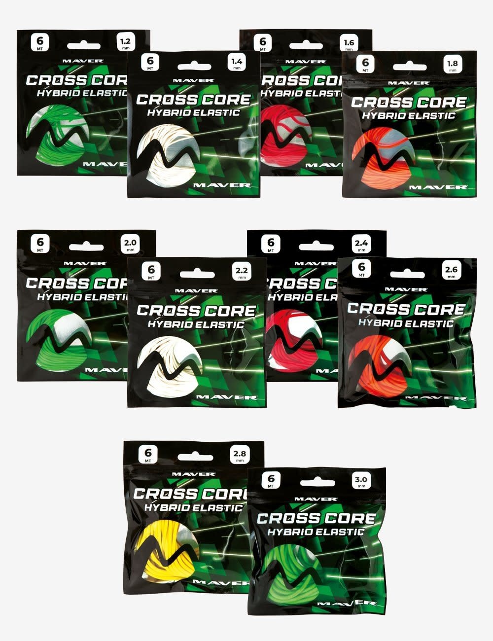 • Das neue Cross Core Hybrid Elastic wird aus einer speziellen Zusammensetzung reiner Latexpolymere hergestellt, die dem Produkt eine ausgezeichnete Fließfähigkeit, eine sehr hohe Dehnung und eine nicht zu vernachlässigende Haltbarkeit verleihen: 800% Dehnungsverhältnis; Pigmentierung mit neutralen Farben und MAT-Finish, die eine konstante geschmeidige und progressive Mechanik gewährleistet; Neutrale Pigmentierung mit MAT-Finish, die besonders wirksam gegen Abnutzung durch die Intensität der UV-Strahlen ist; Beutel mit einem Frischhalteverschluss und mit einer Aluminiumfolie bedeckt, die das im Verkaufspunkt ausgestellte Elastik vor Sonne und Wärme schützt, damit es lange seine Leistung behält; Hergestellt in Größen von 1,2 mm bis 3,0 mm in 5 verschiedenen Farben | die verfügbaren Durchmesser sind geeignet für Angelsituationen von Wettkampfangeln auf Friedfisch in Kanälen und Flüssen bis zum Sommerangeln auf große Karpfen.