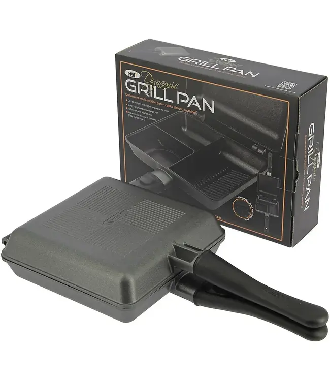 Die NGT Dynamic Grill – 3 Way Pan ist ein super Zubehör für Angler und Camper, die am Ufer verschiedene Kochmöglichkeiten brauchen. Das System besteht aus 2 Pfannen mit Deckel und abnehmbaren (magnetischen) Griffen. Du kannst es als geschlossene Doppelpfanne nutzen oder trennen und als 2 separate Pfannen verwenden – ideal, um Zutaten getrennt zuzubereiten.