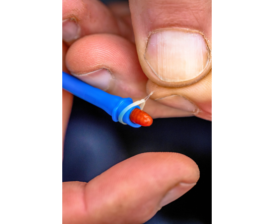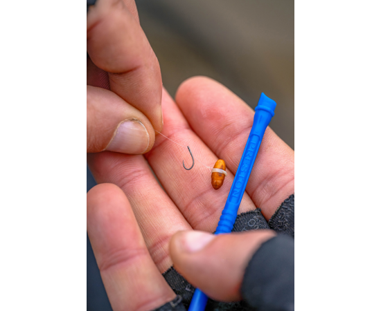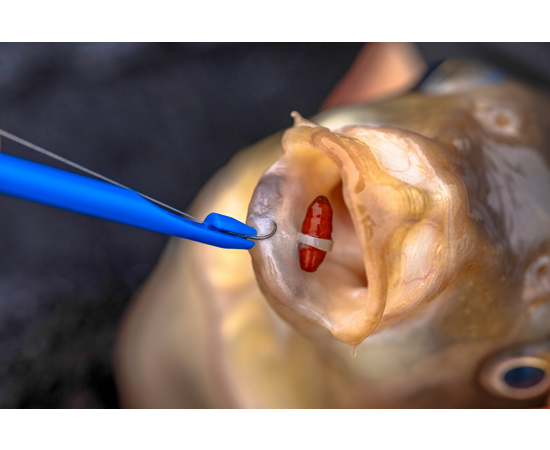 Die Aussparung am Banding Tool ermöglicht das einfache Einsetzen von Pellets oder Castern (z. B. 4 mm), um Ködergummis schnell und präzise überzuziehen. Der Hakenlöser sorgt für ein sicheres und fischschonendes Abhaken.