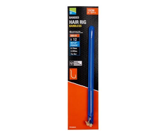 Die Preston KKH-B Banded Hair Rigs 15cm (8 Stück) sind vorgefertigte, extrem robuste Vorfächer für den Einsatz mit harten Pellets und Band’ums – sowohl an der Stipprute als auch am Feeder.