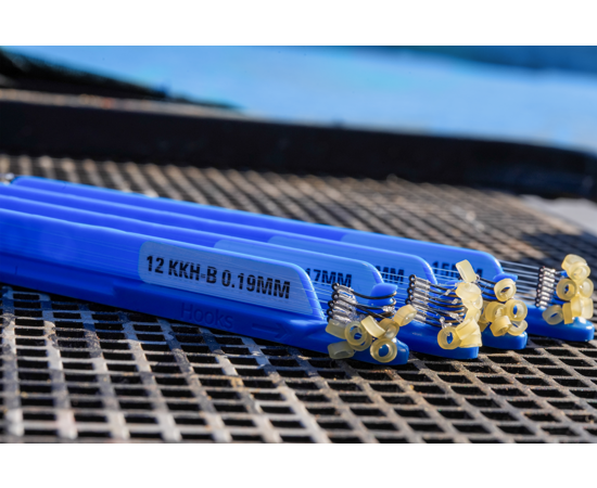Die Haken vom Typ KKH-B sind besonders stark und zuverlässig. Gebunden auf die bewährte Reflo Power Monofilschnur mit einer Latexband-Hairmontage ohne Knoten, bieten sie eine perfekte Köderpräsentation und starke Hakeigenschaften.