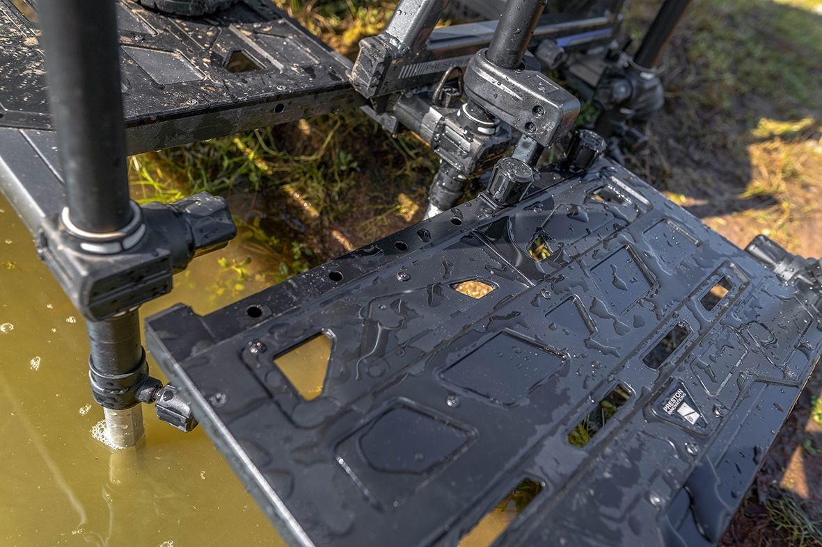 Der Preston Offbox Side Foot Rest ist ein Artikel, den alle Sportangler haben müssen. Mit seinem super starken, verstellbaren Drehpunkt können Sie die Stütze genau dort platzieren, wo Sie sie haben möchten, und das auf beiden Seiten Ihres Sitzkastens. Wenn dieses Fußpodest in Position ist, können Sie es noch auf Ihrem Sitzkasten drehen und Ihren Füßen die notwendige Unterstützung in der richtigen Position und Höhe geben, was Ihnen eine noch bessere Sicht auf das Wasser ermöglicht. Die zwei 36mm Beine, die dabei geliefert werden, können auf die benötigte Höhe ausgefahren werden, und es können auch noch zusätzliche OffBox Zubehörteile angebracht werden, falls Sie dies wünschen oder für notwendig erachten.