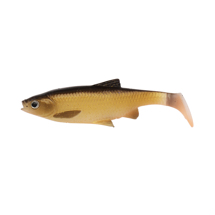 • Der Savage Gear 3D LB Roach Paddle Tail ist eine lebensechte Imitation eines Rotauges. Er bewegt sich geschmeidig durch das Wasser, wobei sein shadähnlicher Schwanz eine rollende, zitternde Aktion erzeugt. Dies macht den Savage Gear 3D LB Roach Paddle Tail zu einer perfekten Beute für Barsch, Hecht und Zander. Du kannst ihn auf verschiedene Weisen verwenden: werfen, vertikal fischen, schleppen. Du befestigst ihn einfach an einem Jigkopf (nicht enthalten) und kannst loslegen. Dank seiner geschmeidigen Aktion und seines echten Aussehens kannst du viele Bisse erwarten.