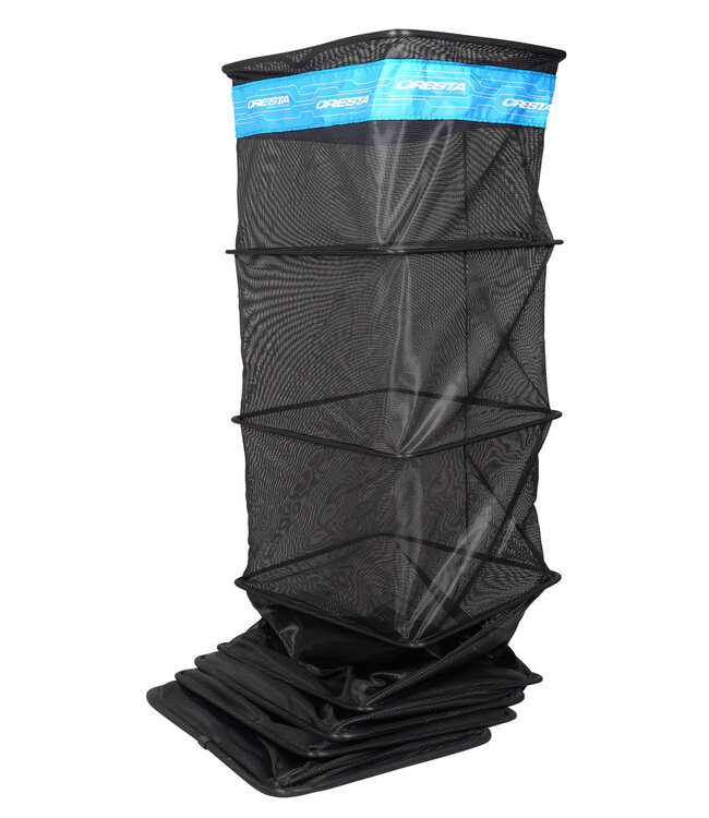 Die quadratischen, stabilen Ringe sorgen dafür, dass das Netz stabil und gleichmäßig am Boden bleibt. Die größere Ringgröße erleichtert und sichert das Einsetzen größerer Fische, und die erste, letzte und vorletzte Ringe haben einen größeren Durchmesser für zusätzliche Stabilität. Im Inneren befinden sich zwei Hebegriffe für ein fischfreundliches Zurücksetzen, während die zwei Kunststoffringe am unteren Ende Platz für ein Gewicht oder eine Schnur bieten, um das Netz an Ort und Stelle zu halten.