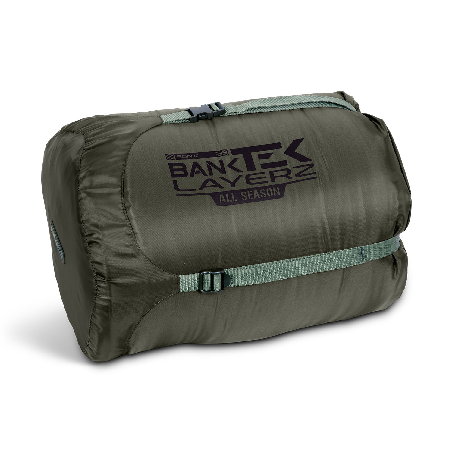 Der Sonik Bank-Tek Layerz Schlafsack kombiniert maximale Flexibilität mit höchstem Schlafkomfort. Die herausnehmbare, wendbare Innenabdeckung ermöglicht dir die Wahl zwischen kuscheligem Fleece oder glattem Polyester – je nach Saison und Vorliebe.