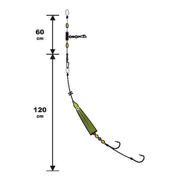 Die BATEAU RS COMPETITION SPECIAL GROS POISSON / FLUORO + OCTOPUS Montagen haben eine Schlaufe am oberen Ende des Schnurkörpers für eine schnelle Befestigung an einem Clip. Mit einem Clip am Slider können Sie das Gewicht der Bleigewichte schnell an die Angelbedingungen anpassen.Die BATEAU RS COMPETITION SPECIAL GROS POISSON / FLUORO + OCTOPUS Montagen sind mit einem 120 cm langen Fluorcarbon-Vorfach, einem super attraktiven phosphoreszierenden Oktopus und einem ultrastarken Haken in Schwarz-Nickel ausgestattet, um Korrosion zu verhindern. Mit diesen Montagen können Sie auf große Exemplare wie Aal, Rochen, Brassen und Wolfsbarsche mit Ködern wie ganzen Sardinen, Makrelenfilets oder ganzen Tintenfischen angeln.