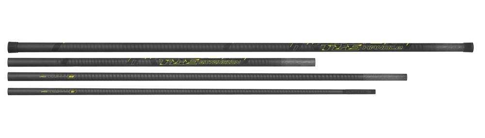 Der TLE Handle ist ein innovativer Kescherstiel für Keschernetze; er ist vollständig aus Carbon mit hoher Modulstärke gefertigt und radial mit Carbonband verstärkt, um eine hohe Widerstandsfähigkeit gegen Quetschungen und eine große Leichtigkeit zu bieten. Der Stiel enthält auch ein zylindrisches Verlängerungsstück von einem Meter, das, zwischen der Basis von 3,90m und dem 2-teiligen Stück platziert, eine Länge von 4,80m ermöglicht oder, als Endelement verwendet, eine Länge von 3,30m erreicht, also ausgezeichnet für die Benutzbarkeit. Die Hülse, aus Aluminium und Messing, ist am Ende des ersten Elements mittels eines durchgehenden Stahlstifts und eines Kohlenstoffgewebes für maximale Stärke und Leichtigkeit befestigt.