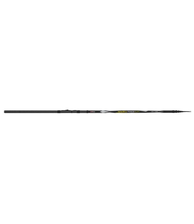 Tatanka Force Slim hat einen extrem kleinen Durchmesser der Rute und ist eine Serie in Allround-Karbon mit sehr hoher Dehnung, verstärkt mit X-Wrapping, geeignet für das Angeln auf Teichen, im Meer oder im Kanal. Der Griff ist aus Alutex-Stoff und liegt sehr gut in der Hand, diese Rute hat eine ausgezeichnete Verarbeitung.