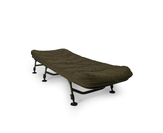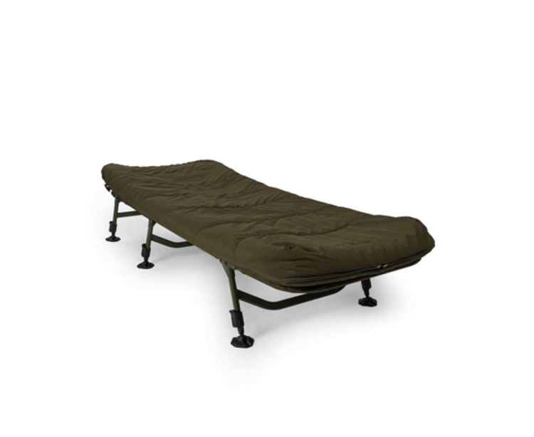 Caractéristiques principales :✔ Cadre plat avec matelas en mousse rembourrée – Confort optimal au bord de l’eau.✔ 6 ou 8 pieds Rocksteady – Grande stabilité sur tout type de terrain.✔ Système de couchage à double couche – Chaud et confortable toute l’année.✔ Facile à plier & transporter – Compact et pratique.✔ Disponible en taille Standard & X – Adapté à toutes les morphologies.