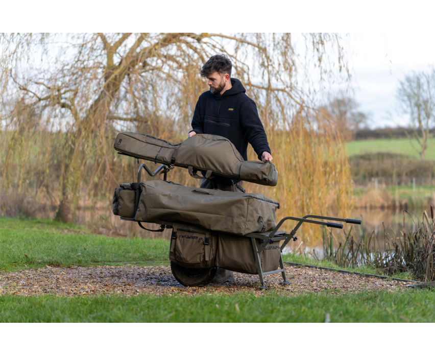 L’intérieur spacieux permet d’y placer des moulinets de grande taille. Des poches spécifiques facilitent le rangement du plomb, des piques, manches d’épuisette ou storm poles. Une fixation latérale permet de transporter une canne supplémentaire à l’extérieur.