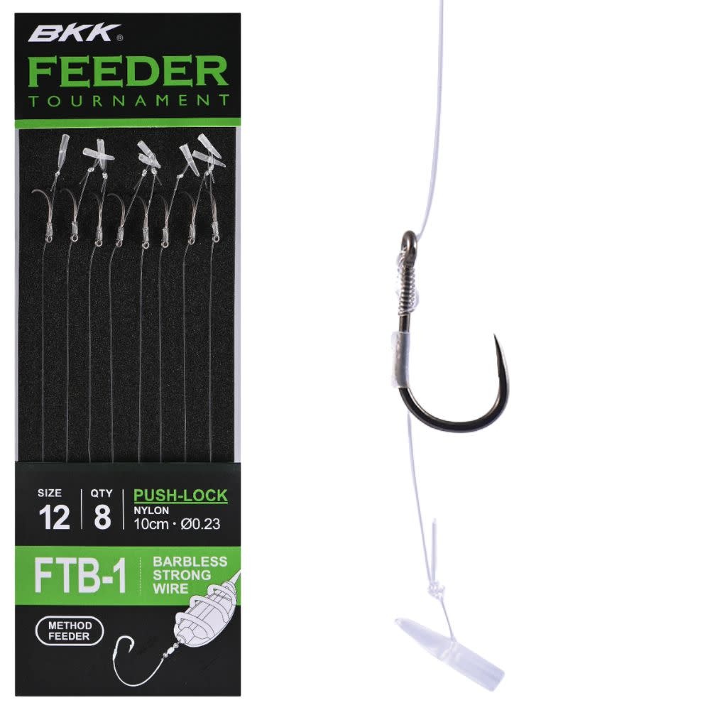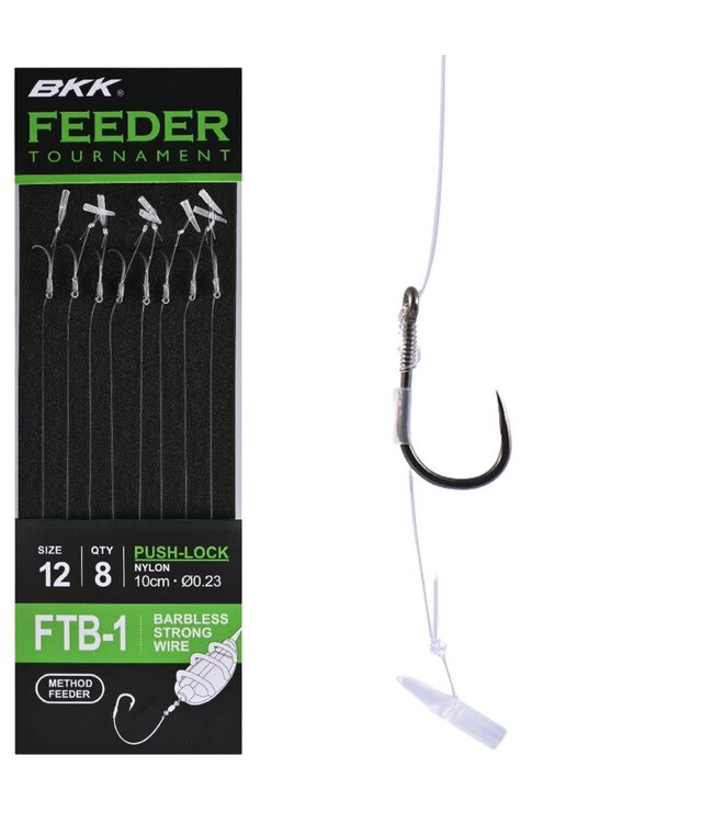 Le BKK Feeder Tournament FTB-1 Push-Lock Rig a été conçu pour offrir une résistance maximale lors de la pêche feeder de gros poissons. Il s’agit de la version BL des FT-1 Push-Lock Rigs et il est idéal pour utiliser du maïs, des pellets ou de la viande. Grâce au système push-lock, l’appât est fixé solidement tout en gardant une présentation stable et naturelle.