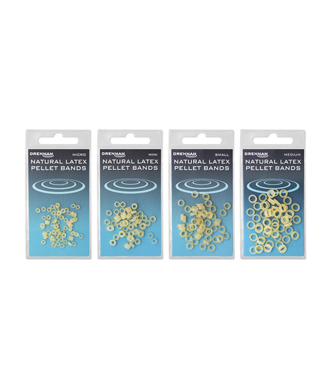 Les bandes pour pellets en latex naturel sont résistantes, durables et incroyablement extensibles. Les bandes d'appât peuvent être attachées directement à l'hameçon, pêchées sur un montage à cheveux avec une bande tendue autour d'un pellet ou, alternativement, la bande peut être tendue et tirée à l'intérieur d'un pellet percé ou d'une bouillette avec un Drennan Band Puller. Les bandes sont prédécoupées, prêtes à l'emploi et, en achetant les bandes de taille appropriée, elles devraient convenir à la plupart des tailles de boulettes. Ces bandes sont également d'une bonne couleur pour les pellets à faible teneur en huile couramment utilisés.