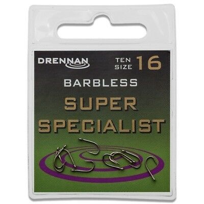 Le Eyed Specimen Super Specialist Barbless est un hameçon sans ardillon. Depuis plus de 20 ans, ces hameçons sont les hameçons pour spécimens les plus vendus au Royaume-Uni. Ils sont le choix automatique de milliers de pêcheurs spécialisés. Un hameçon suffisamment solide et polyvalent pour s'adapter à un large éventail de lignes.