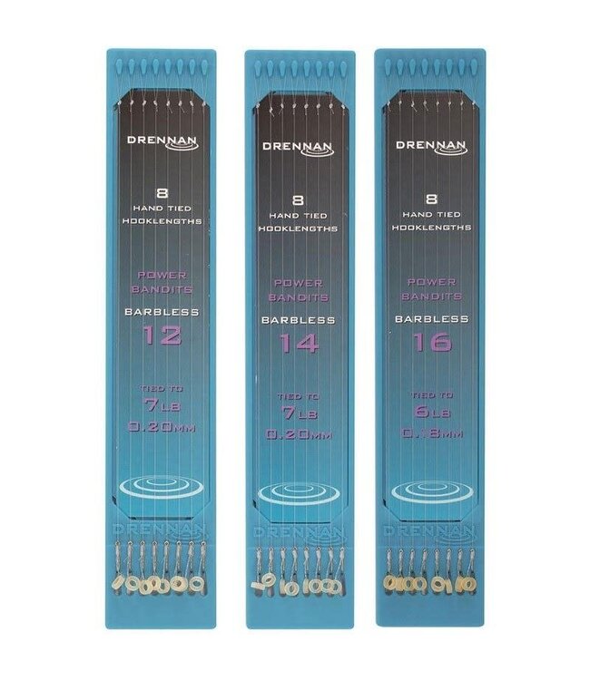 Les hameçons Power Hair Rigger sans ardillon utilisés sur ces longueurs d'hameçons Power Bandit ont un œil aigu tourné vers le haut, ce qui permet à l'hameçon d'être bien droit sur le maillon, ce qui améliore la présentation et les taux d'accrochage. La bande d'appât peut être étirée autour des pellets ou tirée à l'intérieur des pellets percés et des appâts mous comme le maïs doux et la viande avec une aiguille à appât.