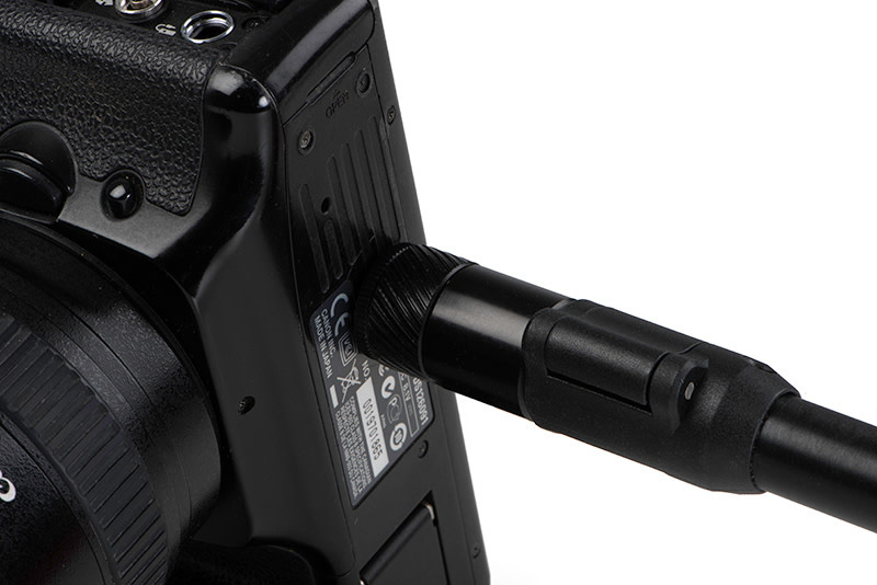 Adaptateur pour appareil photo en aluminium noir anodisé. Pas de vis compatible avec appareils photos, sources de lumière externes et adaptateurs smartphone. Idéal pour se prendre en photo avec ces prises