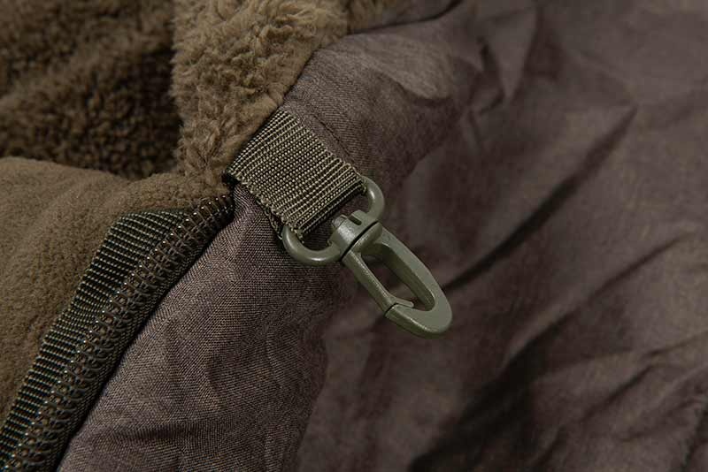 Le design est également pensé pour être pratique. Les fermetures éclair de 10 mm, dites Crash Zips, permettent de sortir rapidement en cas de prise. Grâce à la sangle élastique et aux « housses » élastiques aux extrémités, le sac se fixe solidement à la plupart des bedchairs, même ceux avec pieds simples. La Hot Foot-pocket permet de garder les pieds au chaud en arrêtant la fermeture avant l’extrémité du pied. Le sac est également doté d’un porte-oreiller pour plus de confort.