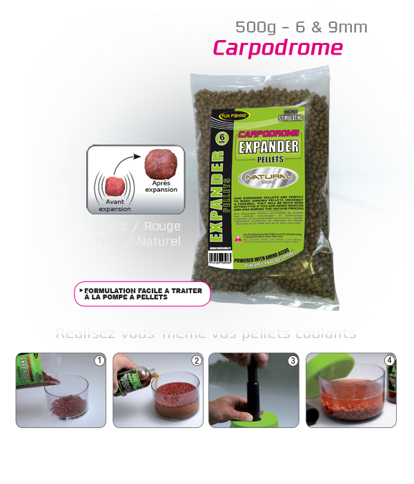 Cette version expandable vous permettra de réaliser vos pellets d’eschage et d’amorçage coulants avec une facilité déconcertante grâce à une pompe adaptée. Hautement attractifs, nos pellets expandables pourront être encore renforcés en rajoutant de l’Amino Booster et du HSA dans le récipient avant la mise sous vide.