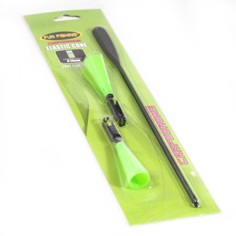 Le Fun Fishing cône viendra bloquer l’élastique à l’intérieur de votre kit. Nous l’avons décliné en 3 tailles : S (15mm), M (20mm), L (30mm) pour que vous puissiez ainsi choisir de faire votre montage sur 1 ou deux brins. Vous pourrez ajuster le diamètre du cône en coupant la base.