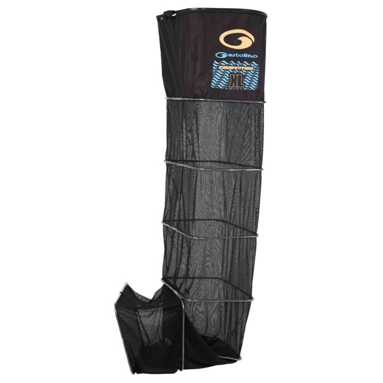 Bourriche à Maille Hydrophobe avec une ouverture en Demi-Lune puis Rectangulaire. Disposant d’un anneau de départ 60 x 60 cm puis 55 x 45 cm sur les suivants. Maillage noir, anneaux en métal et anneaux renforcés par un gainage plastifié. Le 3ème arceau se réduit afin d’accéder au contenu de votre bourriche facilement.