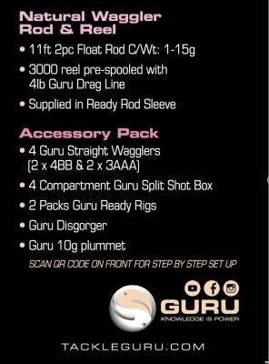 Le Guru Natural Waggler Rod & Reel Combo est un kit complet idéal pour les débutants ou amateurs de pêche flottante. La canne 11 ft (3,35 m) en deux brins offre une plage de lancer de 1 à 15 g, parfaite pour la pêche de la carpe légère ou des poissons blancs à la surface.