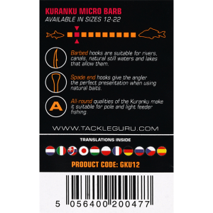 Le Guru Kuranku Micro Barbed Spade End est un nouveau modèle d’hameçon, conçu pour les plans d’eau naturels où l’utilisation d’un micro ardillon est nécessaire. Sa forme unique de type crank, combinée à un revêtement en nickel noir ultra résistant, lui permet d’être extrêmement solide, tout en conservant une finesse de fil optimale pour ne pas alourdir l’esche.