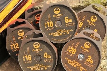 Lier des bas de ligne n'est pas une tâche facile pour tout le monde. C'est pourquoi il existe désormais des montages spéciaux Guru Feeder prêts à l'emploi. Des bas de ligne feeder parfaitement noués, équipés de l'hameçon populaire LWGF. Ces lignes ont une longueur de 100cm et le nylon de 0,13mm (4lb) est le populaire N-Gauge ! Il y a 8 lignes sur une bobine (qui tient parfaitement dans la rigbox de Guru) !