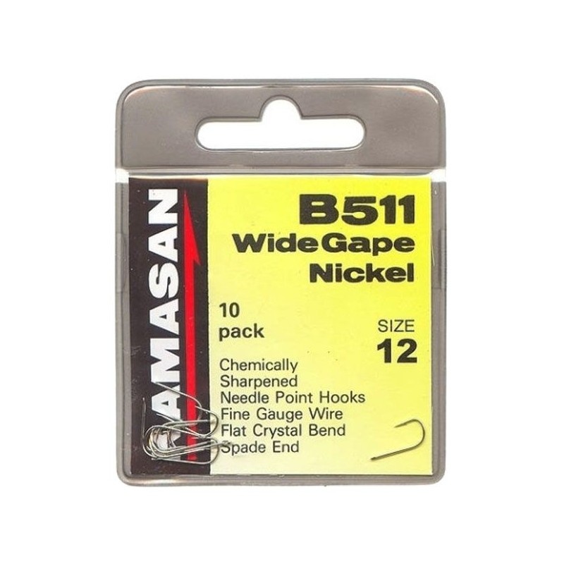 De Kamasan B511 Wide Gape Nickel Spade-Barbed is een populaire keuze onder witvisvissers die op zoek zijn naar een betrouwbare, lichtgewicht en efficiënte haak. Deze haak is uitgevoerd in nikkel voor extra duurzaamheid en zichtbaarheid onder water.