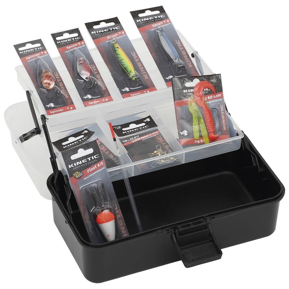 La Kinetic Tackle Box Big Kit - Eau Salée est une boîte de pêche remplie d'équipements pour la pêche en mer. Préparez-vous pour une journée de pêche en mer !