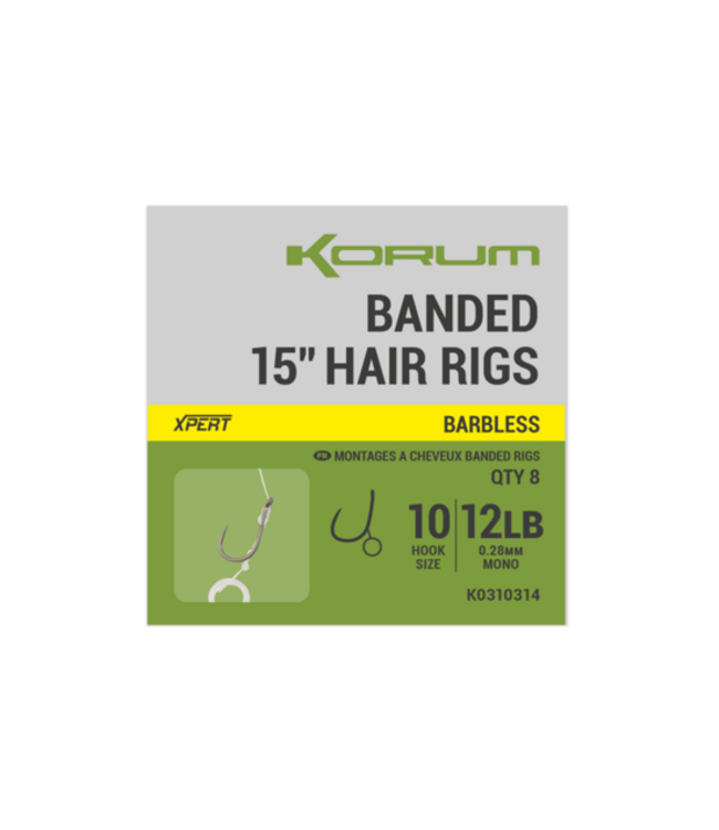 Korum 15" Banded Hair Rigs Sans Ardillon (8 pcs)