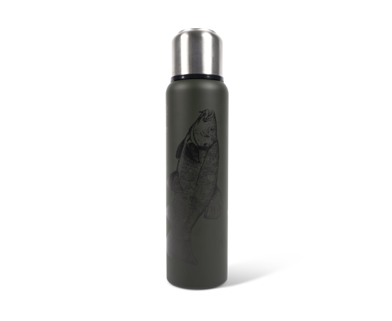 Grâce à son double paroi en acier inoxydable 18/8, elle conserve vos boissons chaudes jusqu’à 24 heures et froides jusqu’à 36 heures. La surface extérieure anti-condensation reste sèche au toucher, même en plein été. L’illustration d’une tanche (tench), signée par l’artiste halieutique Steve Phillips, apporte une touche artistique unique.