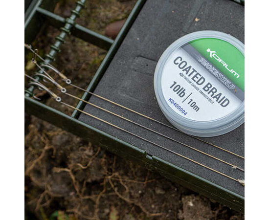 Des matériaux puissants et fiables pour les longueurs d'hameçons, conçus pour offrir un camouflage, une résistance et une durabilité maximales lorsque vous ciblez de gros poissons. L'intérieur de la tresse Smokescreen à pénétration rapide et le revêtement extérieur Smokeshield résistant à l'abrasion ont été vigoureusement testés pour donner aux pêcheurs de spécimens une confiance totale pour tous les styles de pêche. Idéal pour les combi-rigs, ou utilisé avec le revêtement intact pour des montages résistants aux emmêlements.